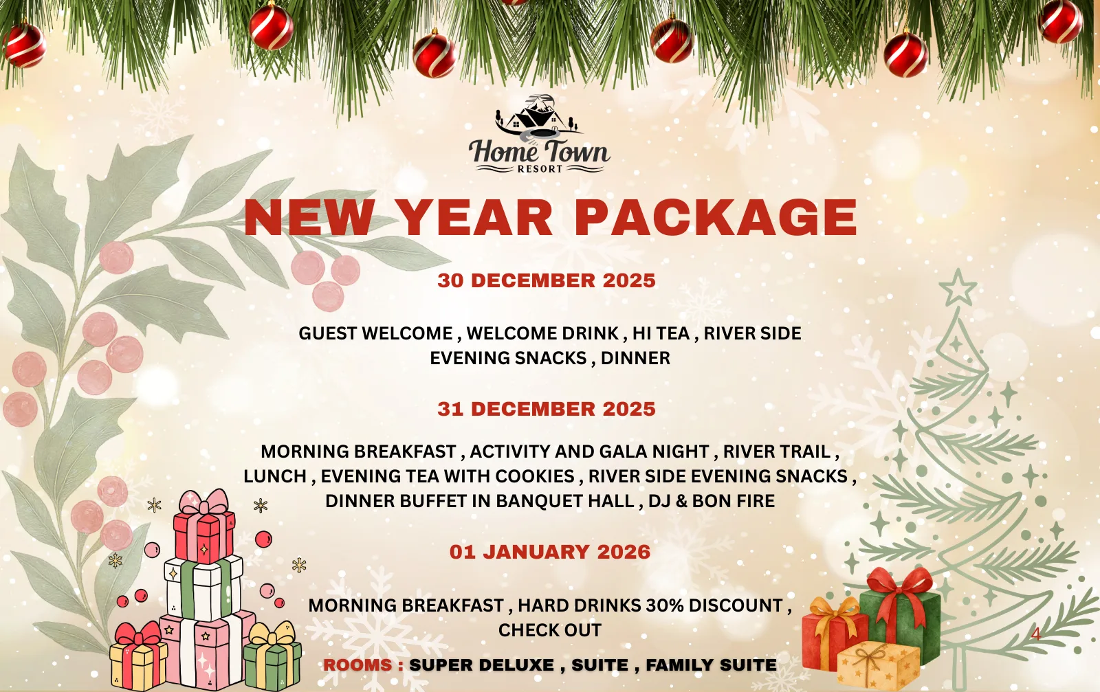 Surrounded by lush greenery and tranquil landscapes, Home Town Resort is thoughtfully designed for travelers who value peace, privacy, and pure relaxation. Enjoy spacious rooms, personalized hospitality, and the refreshing charm of nature all around you.